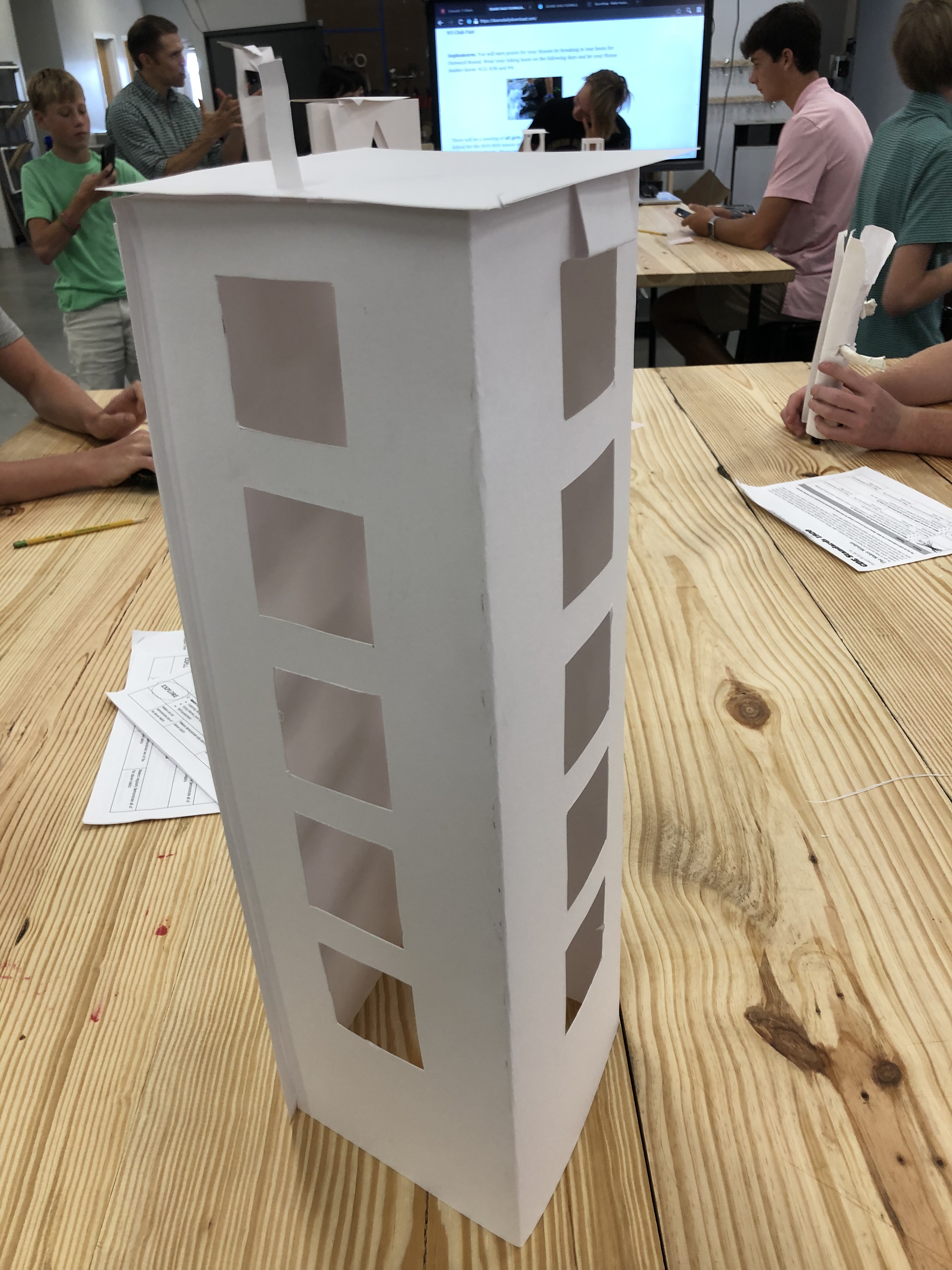 This year, I have become better at imagining what I can do using only 1 material, this will improve my ability to create with multiple materials later on. At first, when building the paper tower, I wasn’t sure how I was going to connect the sides, because we couldn’t use glue. I then thought about connecting them by cutting one side with X-acto knife, and leaving some paper on the ends. Then cutting the corners off the other end so that I could insert the sides together. That went well, because I came up with it on my own instead of someone teaching me how to do it.