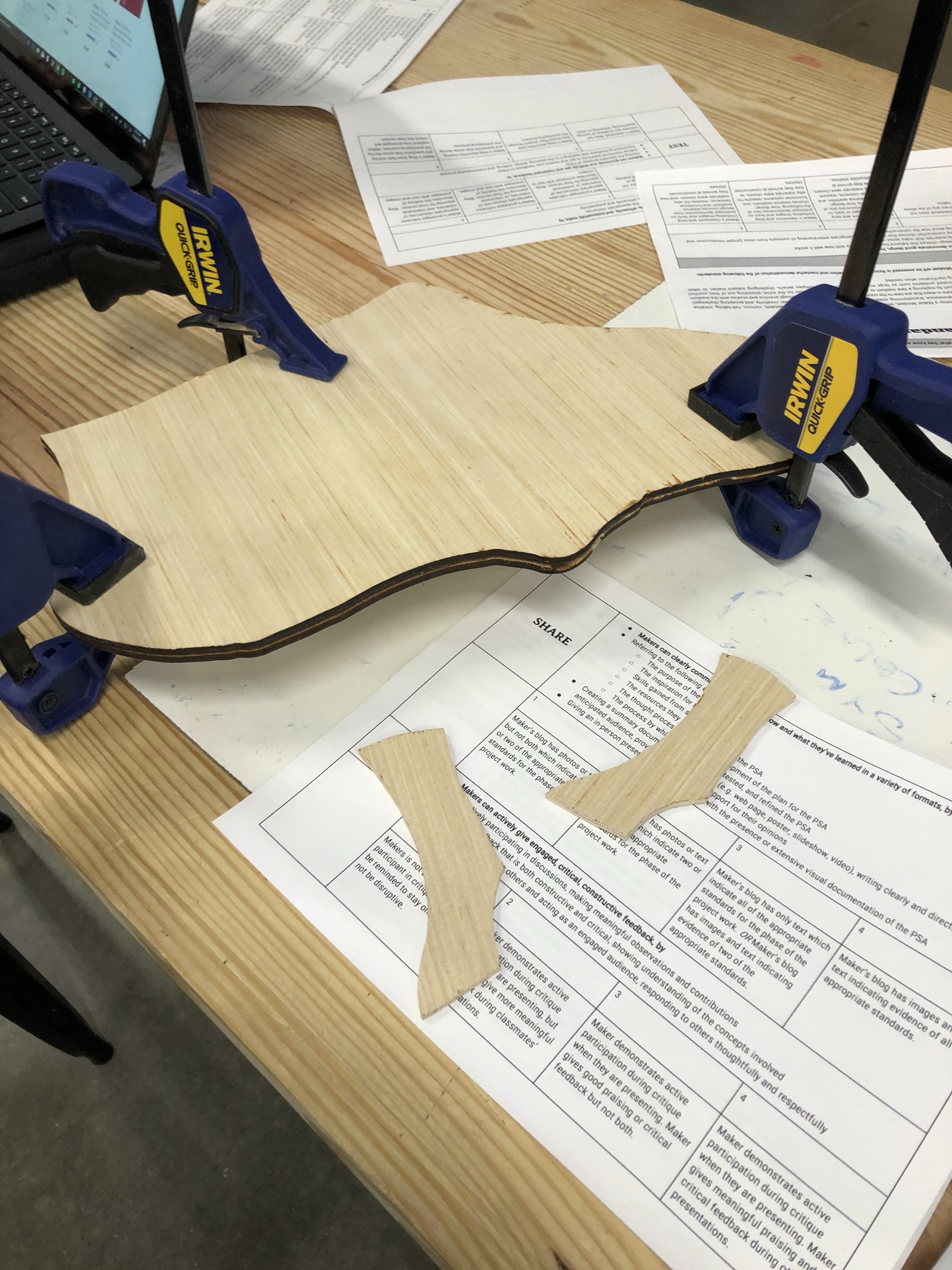 Today, Ethan and I started class by drawing 2 6×2 boxes on our pieces of wood, we then drew 2 bodies and cut them out.
