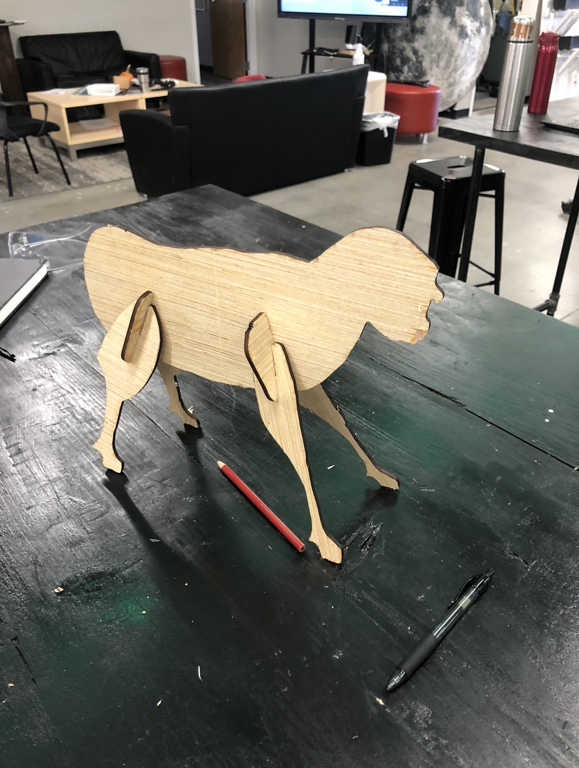 When we first started the project, Ethan and Chase were online so i started sketching possible ideas in my engineering log. I am not much of an artist, so I was happy with what I drew (see picture above). Now that we knew what we wanted the final product to look like we had to figure out how it was going to be put together. We researched the internet for way to make wooden reindeers. The best option we found was to make the body and legs separate and then connect them with wooden joint pieces. To create the prototype, I drew out all the pieces we needed to scale and then used adobe to trace it and make it into a file that could be put in the laser cutting machine.